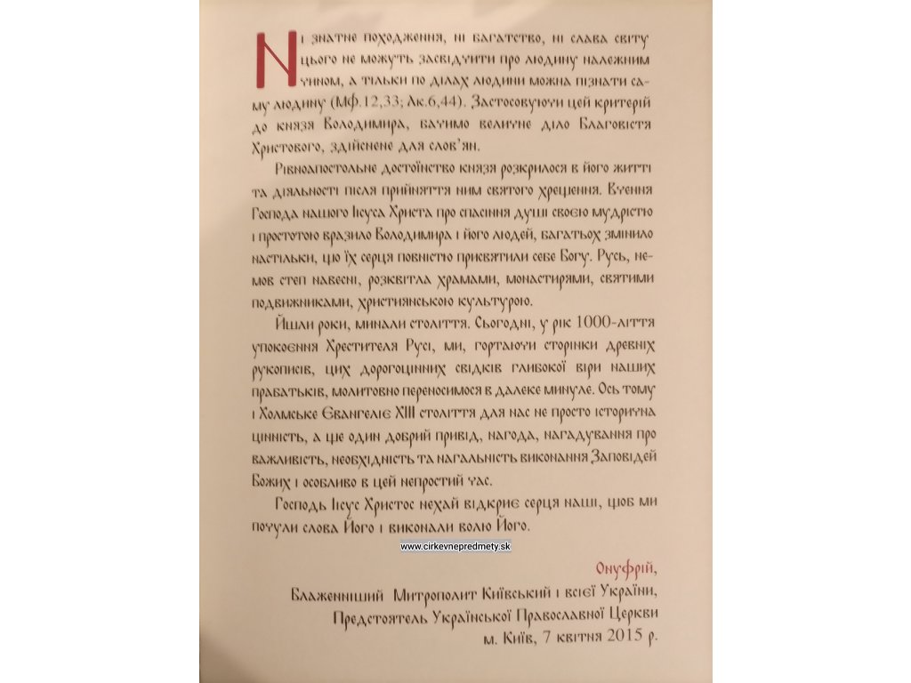- Dnes je Evanjelium Cholmské symbolom pravoslávnej viery a kultúry a je starostlivo uchovávané ako klenot stredovekej literárnej tvorby.