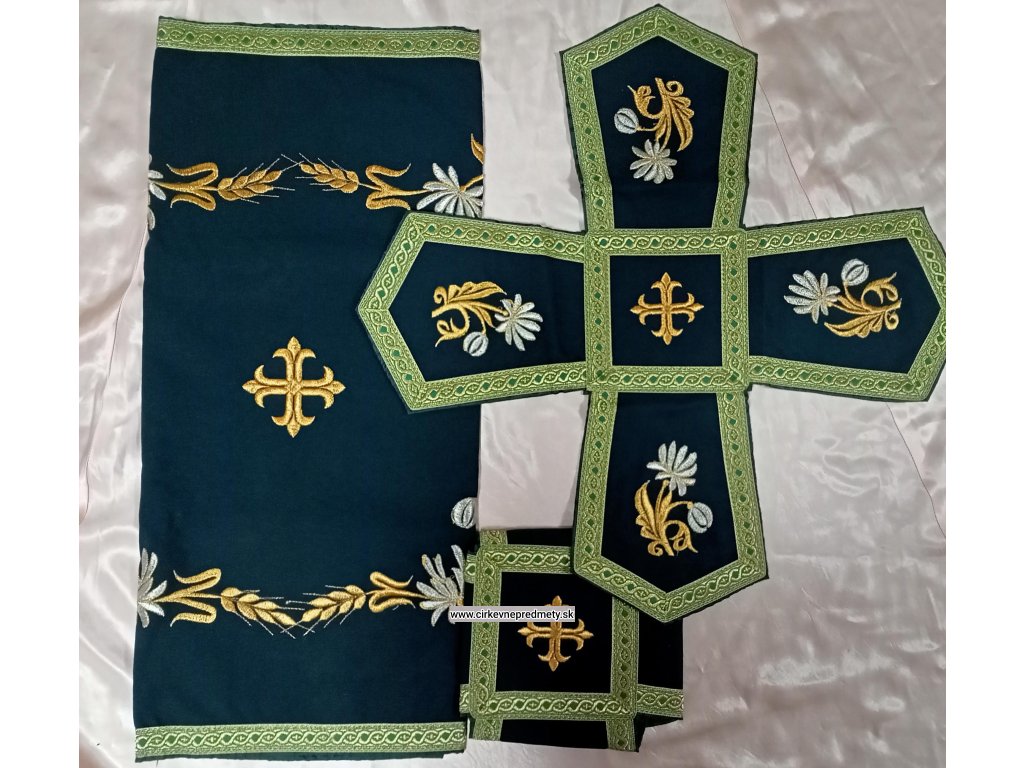 Pokrovce a vozduch vyšité zlatou niťou nie sú len funkčnými predmetmi, ale aj liturgickým umením, ktoré zdôrazňuje posvätnosť Eucharistie.