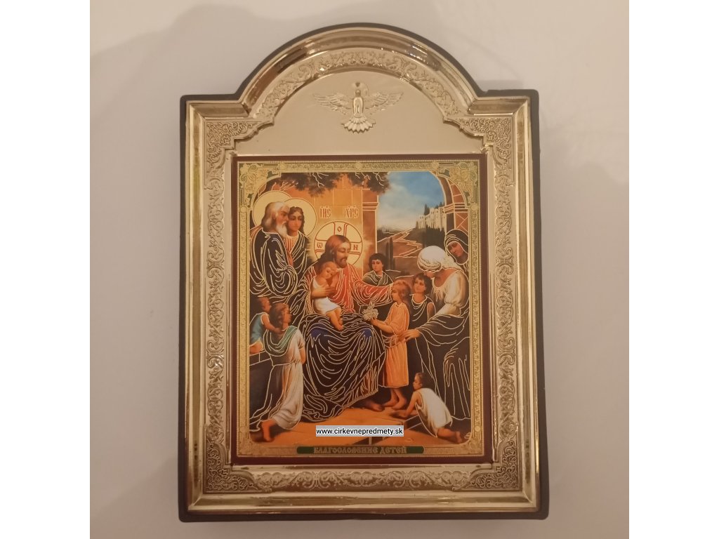 Ikona Požehnania detí zobrazuje rituál, pri ktorom kňaz požehnáva deti, aby ich chránil Boh, dal im zdravie, múdrosť a požehnanie. Tento typ ikony nie je bežne zastúpený v tradičných ikonografických zbierkach, ale ide o zobrazenie veľmi dôležitého momentu v kresťanskej praxi, keď sa vykonáva požehnanie detí v kostole alebo v rodinnom prostredí.
