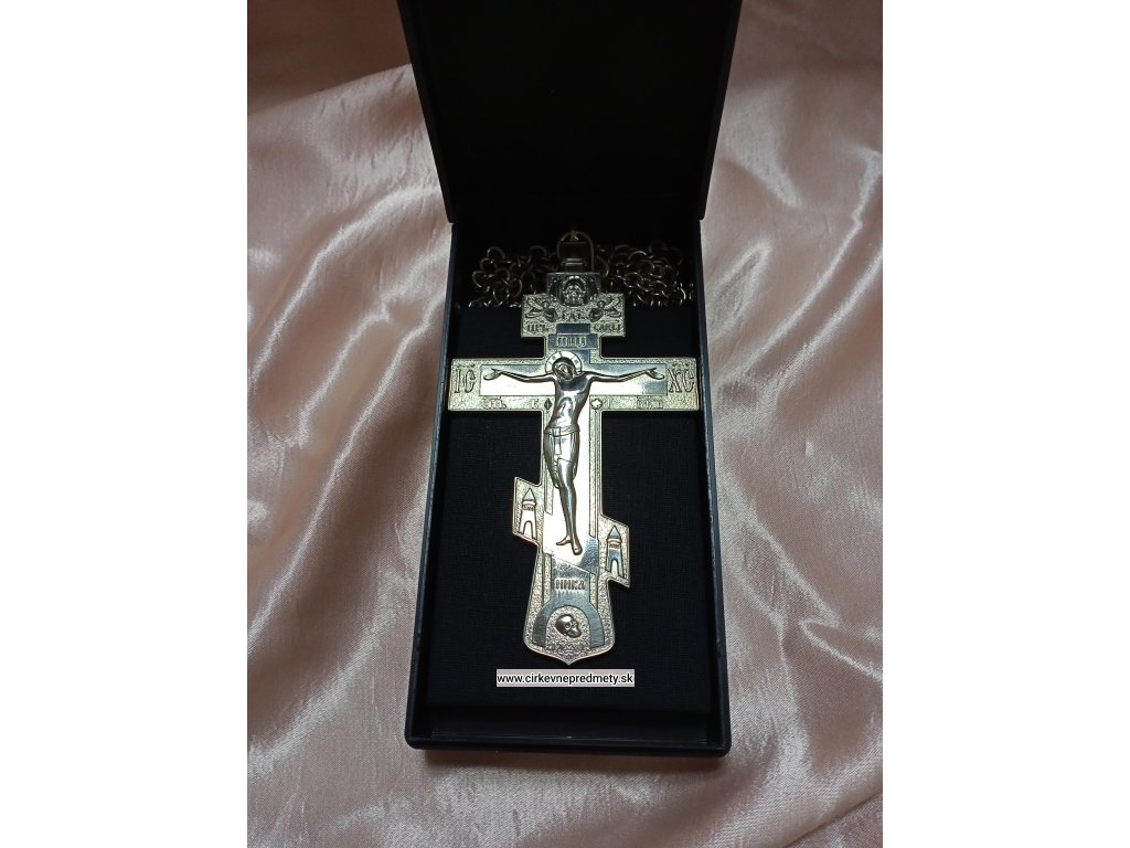 Kňazský strieborný kríž je elegantný a symbolický liturgický predmet určený pre kňazov počas bohoslužieb a obradov. Tento kríž je vyrobený z kvalitného materialu, čo mu dodáva vznešený vzhľad a hodnotu. S jeho pomocou sa kňaz prihovára veriacim počas slávenia Svätých obradov a symbolizuje Kristovu obetu a spásu. Kríž je nielen duchovným predmetom, ale aj výnimočným liturgickým nástrojom, ktorý podčiarkuje posvätnosť a vážnosť každého obradného momentu. Ideálny pre cirkevné obrady a dôležité náboženské príležitosti.