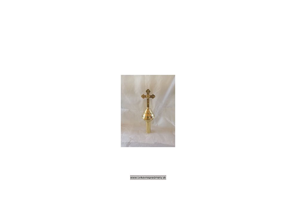 Kovový kríž s hrotom pre choruhvy je symbolickým a praktickým doplnkom cirkevných obradov a slávností. Tento kríž je vyrobený z kvalitného kovu a vybavený hrotom, ktorý umožňuje jeho pripevnenie na choruhvu alebo cirkevnú zástavu. Jeho elegantný dizajn a pevná konštrukcia zabezpečujú dlhú životnosť a stabilitu. Tento kríž je ideálny pre liturgické procesie, oslavy, alebo ako súčasť liturgických zástav a choruhiev, ktoré sprevádzajú bohoslužby a duchovné obrad.