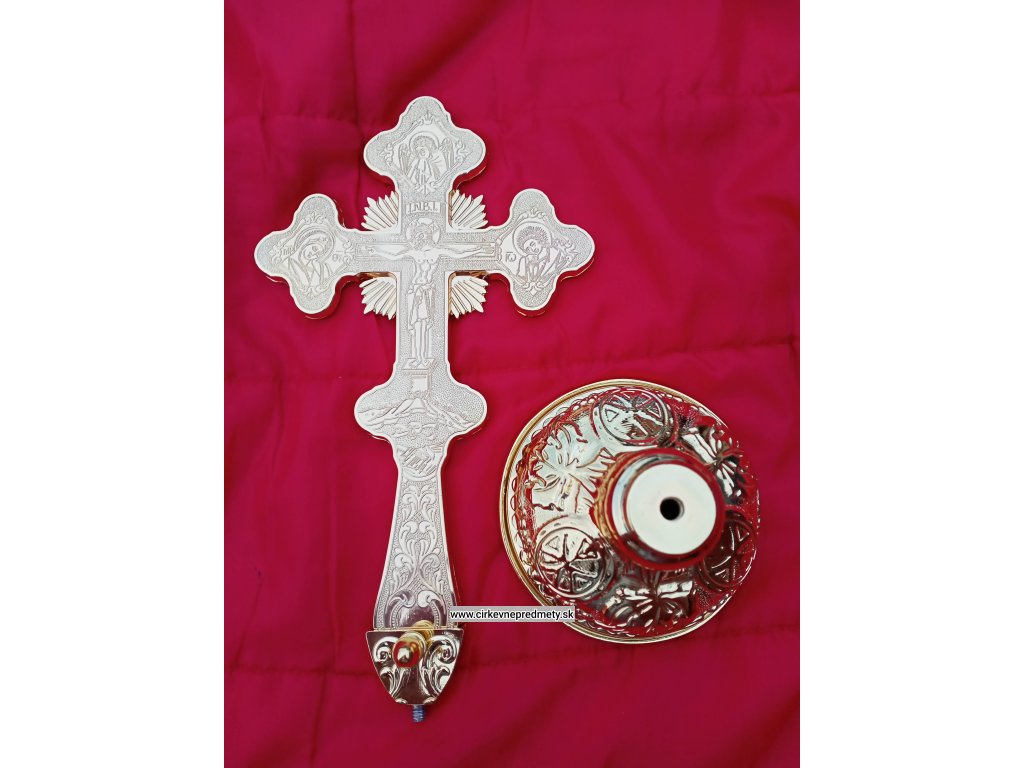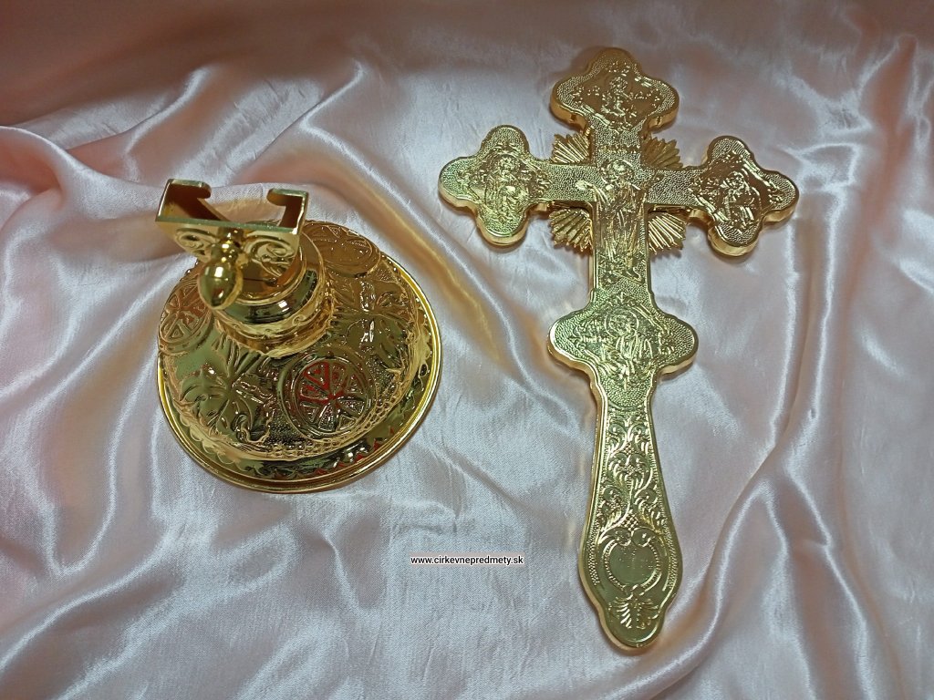 Kríž naprestolný kovový s pozlátením na podstavci je elegantný a symbolický duchovný predmet, ktorý je ideálny pre umiestnenie na oltár alebo prestol v kostoloch, domácnostiach alebo kaplnkách. Tento kríž je vyrobený z kvalitného kovu a zdobený jemným pozlátením, čo mu dodáva luxusný a posvätný vzhľad. Jeho stabilný podstavec zaručuje bezpečné umiestnenie a dodáva mu výnimočný vzhľad. Tento kríž je nielen krásnym dekoratívnym prvkom, ale aj silným symbolom viery a duchovného života. Vhodný na použitie pri bohoslužbách, modlitbách alebo ako súčasť chrámovej výzdoby.