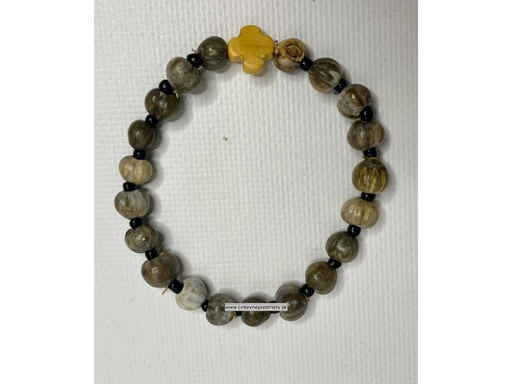 Náramok vyrobený zo semien rastliny známej ako „Slzy Bohorodičky“ (lat. Coix lacryma-jobi), ktoré nesú hlbokú duchovnú symboliku. Tento elegantný náramok pripomína oddanosť, modlitbu a ochranu pod plášťom Panny Márie.