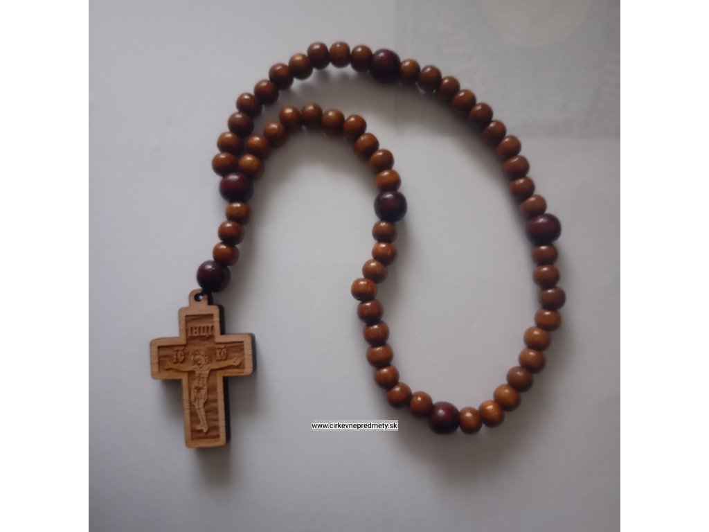 Drevený ruženec na 50 zrniek s veľkým krížikom je modlitebný nástroj, ktorý kombinuje praktickosť s výraznou symbolikou. Tento ruženec slúži na prehĺbenie duchovného života prostredníctvom modlitby a meditácie.