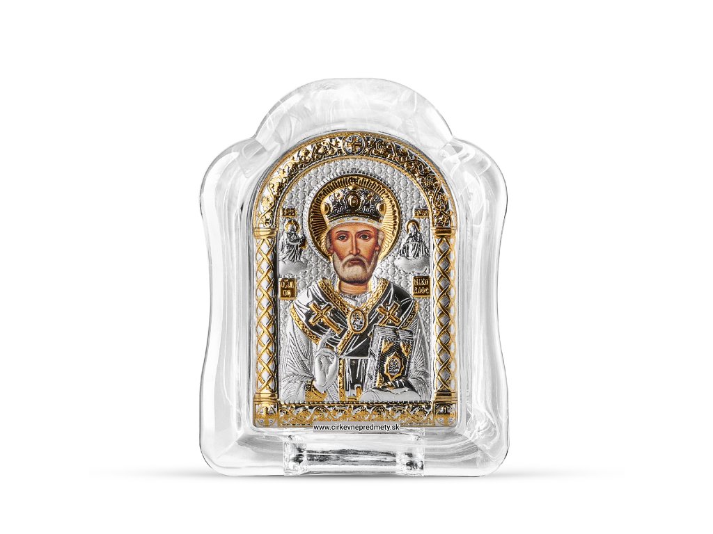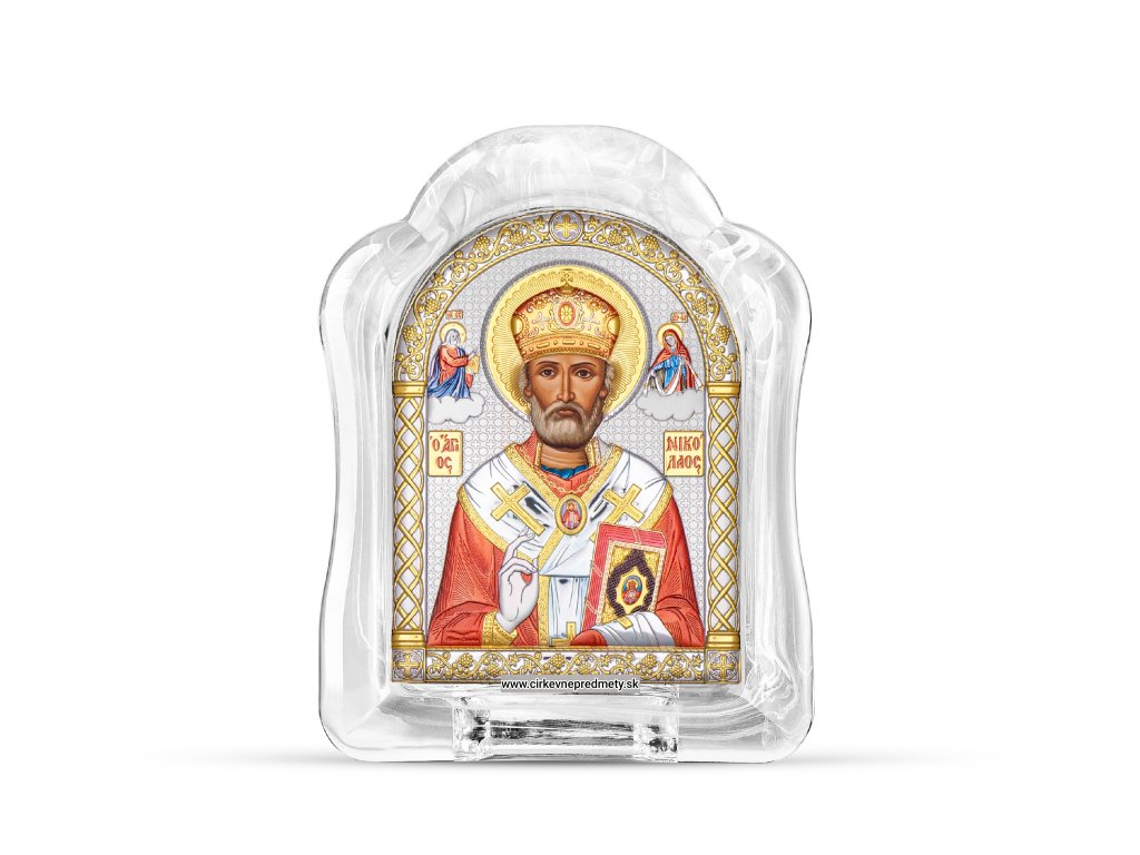 Ikona svätého Mikuláša z pravého muránskeho skla je nádherným spojením tradičného kresťanského umenia a benátskeho sklárskeho majstrovstva. Svätý Mikuláš, známy ako patrón cestovateľov, detí a núdznych, je na ikone zobrazený s typickými symbolmi – evanjeliom a znakom požehnania. Muránske sklo dodáva ikonám jedinečný lesk, hĺbku a žiarivé farby, ktoré podčiarkujú duchovnú silu tohto svätca.