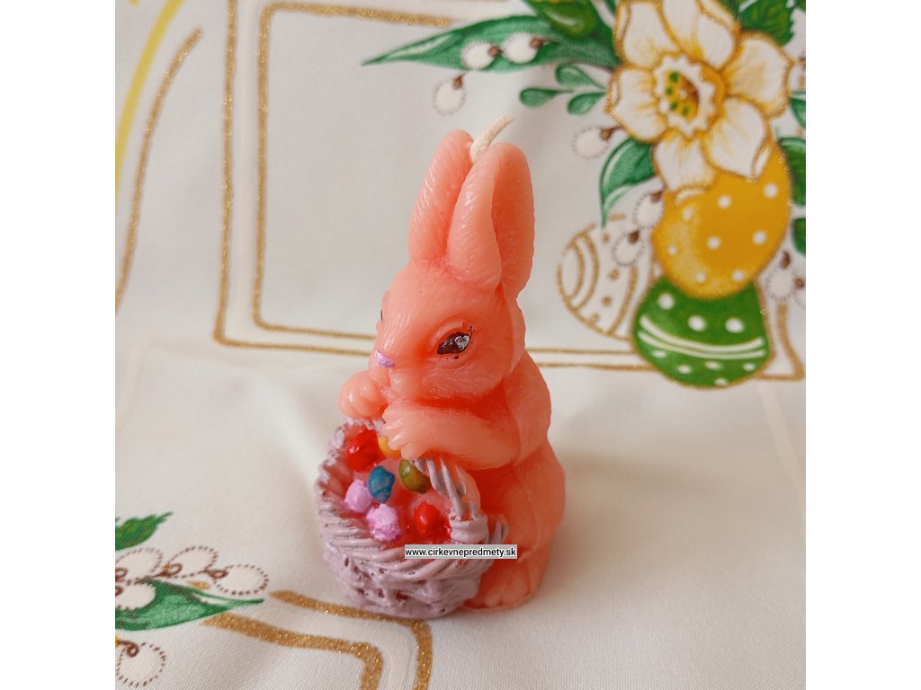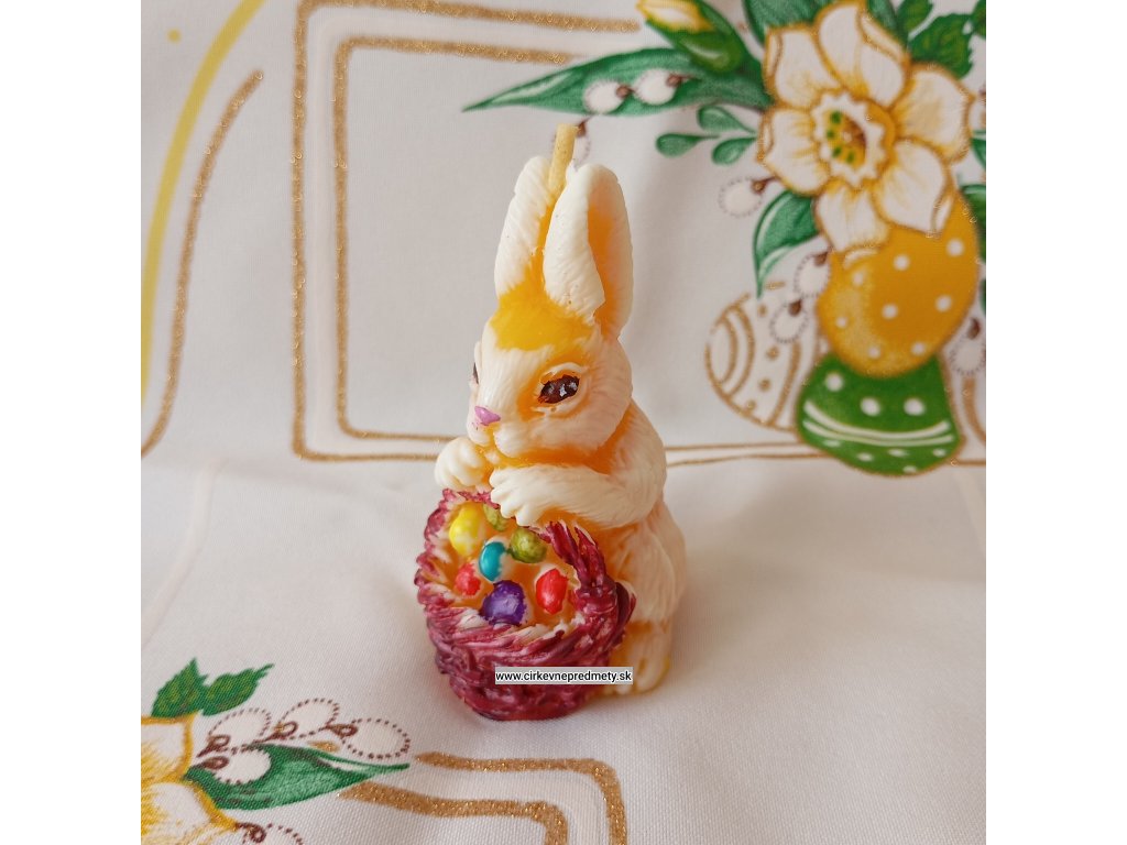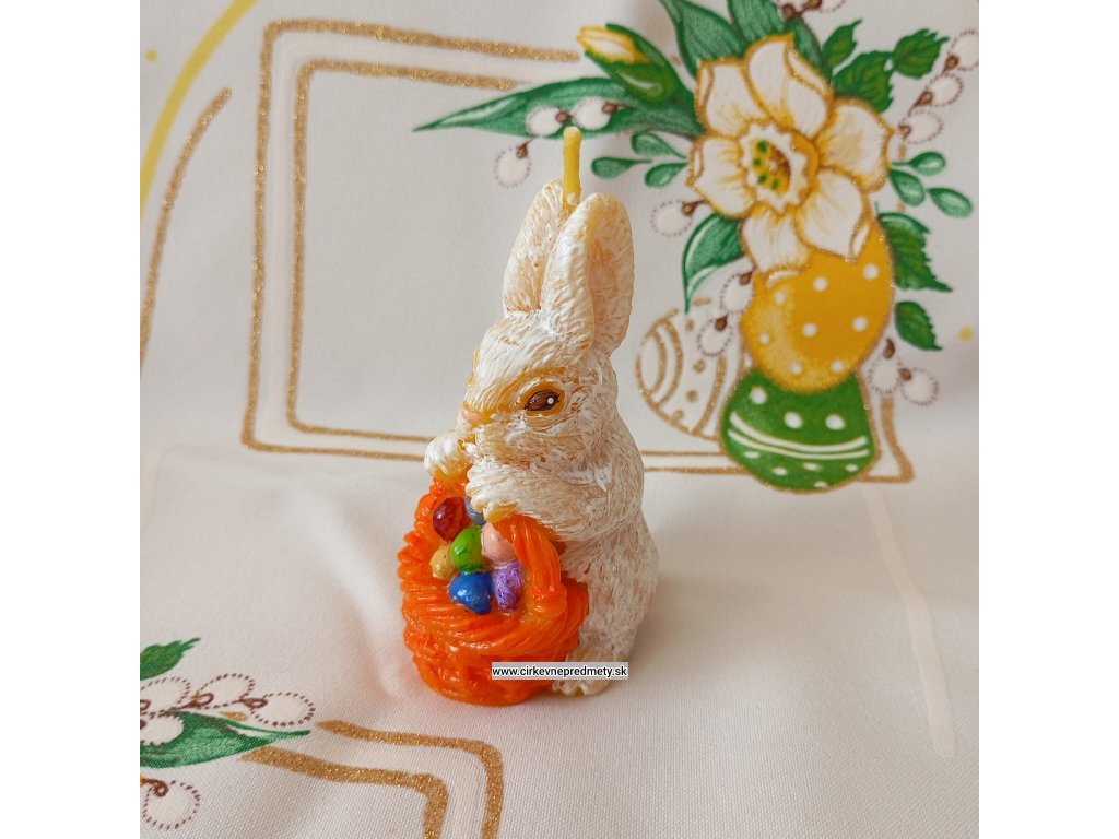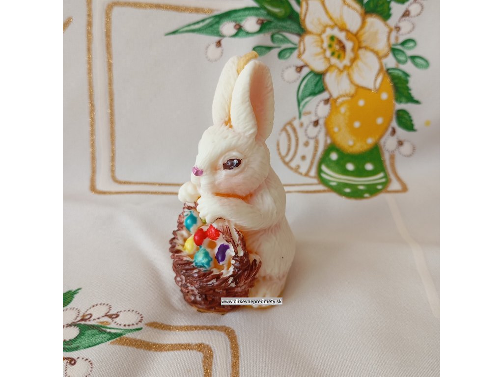 Sviečka v tvare zajaca s košíkom, vyrobená z prírodného včelieho vosku. Tradičné remeselné spracovanie zaručuje autentický vzhľad a príjemnú vôňu vosku. Ideálna veľkonočná dekorácia s jemným duchovným nádychom. Rozmer: 8,5x4,5 cm
